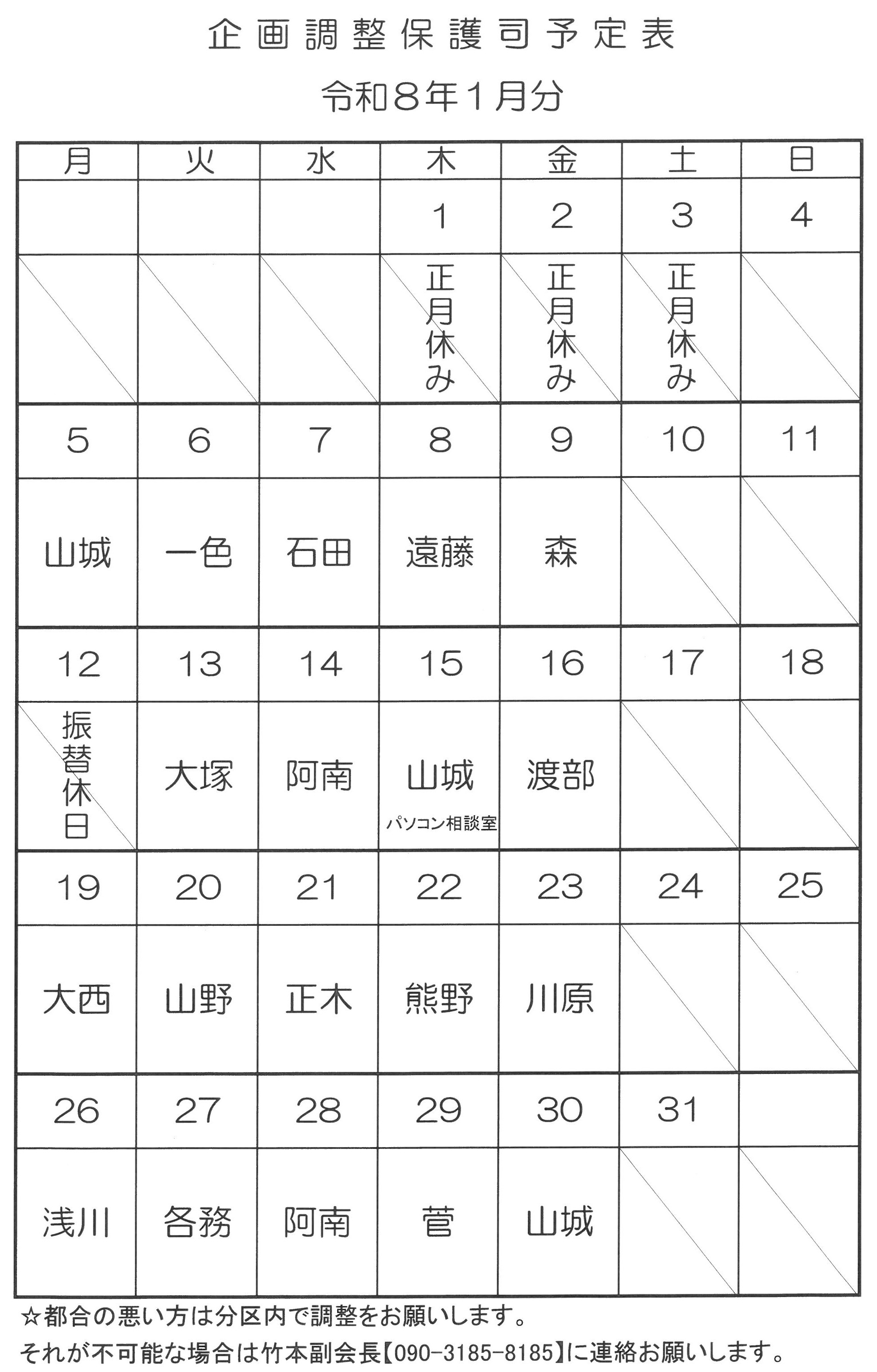 不可能な場合は竹本副会長【090-3185-8185】に連絡お願いします。